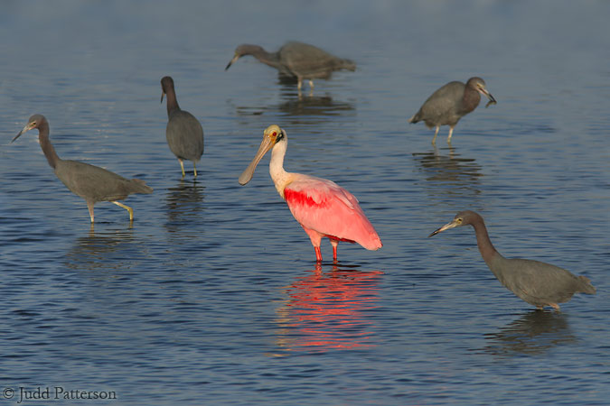 Spoonbill and Little Blue Herons - Ding Darling NWR